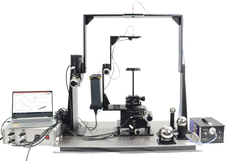 The measurement platform of the iSpec-BRDF Bidirectional Reflectance/Transmittance Distribution Function Spectral Measurement Instrument is illustrated in the diagram. The entire system comprises an illumination system, a spectral detection system, a measurement mechanical system, and spectral data software processing. During the measurement process, spectral measurement software and measurement mechanical system control software are integrated through interface software. This allows the entire measurement process to be automatically controlled by a computer, making the experimental operation convenient, quick, and time-efficient. The fully automated BRDF spectral data acquisition software collects data in real-time and outputs results.