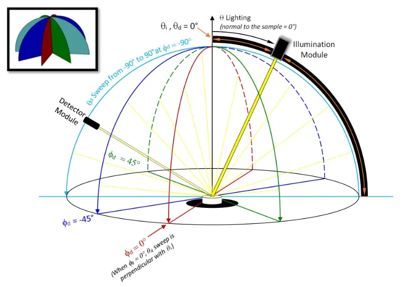 ● BRDF four degrees of freedom are automatically set and controlled by software across the full range of angles.