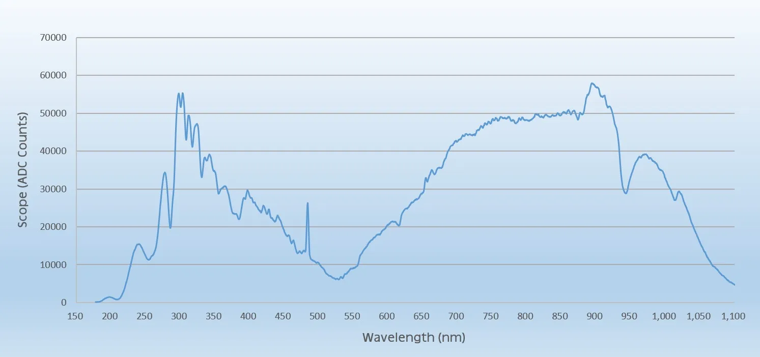 The iLight-DHS-CAL light source provides a continuous and stable output across a wavelength range of 250-1100 nm using a combined deuterium-halogen configuration. The cooling of the light source employs a multi-channel air cooling and heat sink structure, ensuring the light source operates at optimal temperatures. The output of the light source is exceptionally stable at up to 0.5%, thanks to unique circuit control that allows the intensity of the halogen light source to be adjusted. The system supports manual or TTL shutter control.