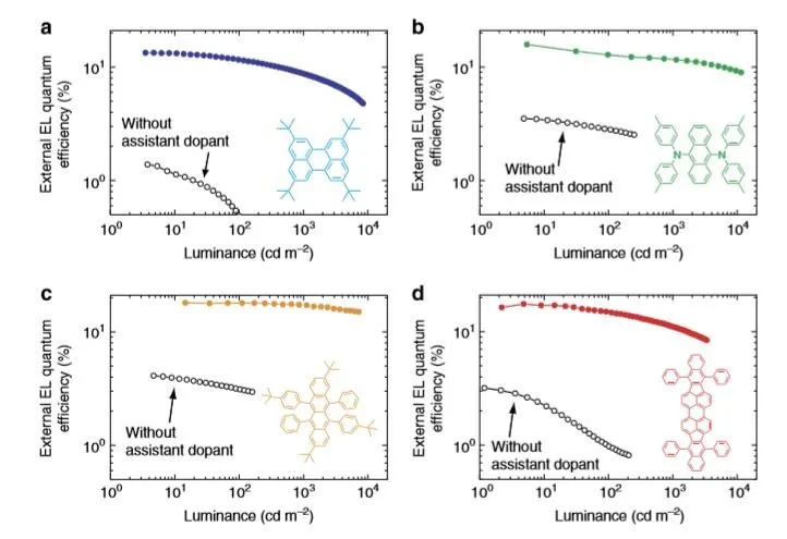 The external quantum efficiency (EQE) of an electroluminescent device is one of the key parameters determining the luminous efficacy of the device after packaging and is crucial for the commercialization of electroluminescent devices. It reflects the efficiency of converting electrical energy into light, indicating the utilization rate of input power. Higher luminous efficiency means lower thermal loss and higher energy utilization. In the research of electroluminescent devices, the corresponding parameter is the external quantum efficiency (EQE).