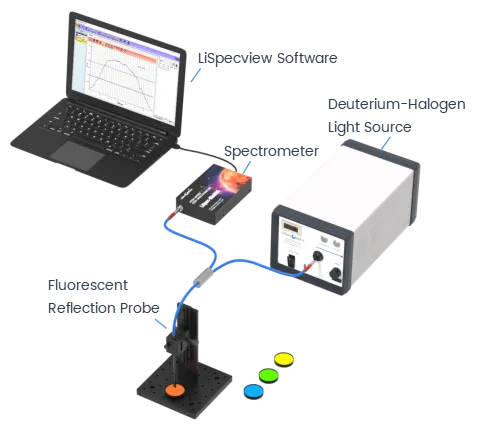 Fluorescent substances emit radiation with a certain spectral distribution under the radiation energy of specific wavelengths, usually scattering energy radiation in all directions. The fluorescence energy generated in fluorescence spectral measurement is less than the energy of the photons of the excitation light, only about 3% of the excitation light energy. It has high sensitivity, strong selectivity, requires small sample quantities, is simple to use, and is environmentally friendly. It is widely used in engineering applications such as monitoring food safety in food processing, fluorescence diagnosis of lesions in biomedical applications, exploration of oil minerals in geology, determination of soil mineral composition, and detection of trace elements in substances. LiSen Optics' fiber optic spectrometers feature interchangeable slits, selectable wavelength ranges, and resolution design, allowing customers to freely configure and match the fluorescence measurement system with suitable parameters according to their needs.