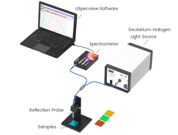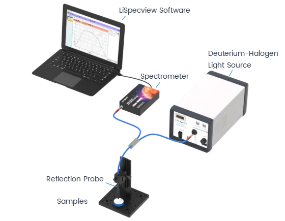 With the booming industrial development, the quality control of the material characteristics has become increasingly strict. The technology of rapid and accurate transmission/reflection spectral measurements using fiber optic spectrometers is becoming more mature. Transmission/reflection spectral measurement is a basic method of spectral measurement, typically requiring equipment such as a spectrometer, light source, optical fiber, measurement stand, standard reference samples, and measurement software. To obtain better spectral data from different types of samples, these two basic modes may evolve into many more forms. Fiber optic spectrometers use optical fiber paths, overcoming the limitations of optical paths in instrument integration. LiSen Optics' fiber optic spectrometers are characterized by their small size, high stability, support for secondary software development, and a rich array of accessories, and have been successfully applied in the testing of industries such as glass and polymer materials. LiSen Optics provides users with spectral measurement equipment centered around spectrometers, and with these richly configured devices, various common spectral measurement systems can be easily set up.