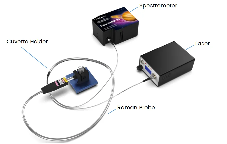 The Raman measurement system mainly consists of a spectrometer, a laser, a Raman probe, and Raman identification spectrum analysis software. Raman scattering is primarily Stokes and anti-Stokes, with Stokes Raman scattering usually much stronger than anti-Stokes scattering. Raman spectrometers typically measure Stokes scattering. Commonly used Raman spectrometers include 532/785/1064 Raman spectrometers. Raman measurements are generally an order of magnitude weaker than fluorescence signals. For weak Raman signal measurements, Surface-Enhanced Raman Scattering (SERS) is employed to amplify the Raman signal. LiSen Optics' LiSpec-UV series of industrial high-speed spectrometers, with their high sensitivity and high signal-to-noise ratio, can be paired with lasers and Raman probes to measure weak spectral signals, widely used in food safety, chemical laboratories, biology, and medical optics for the determination and confirmation of substance composition. They are also applicable in forensics for drug detection and in the jewelry industry for gemstone identification.