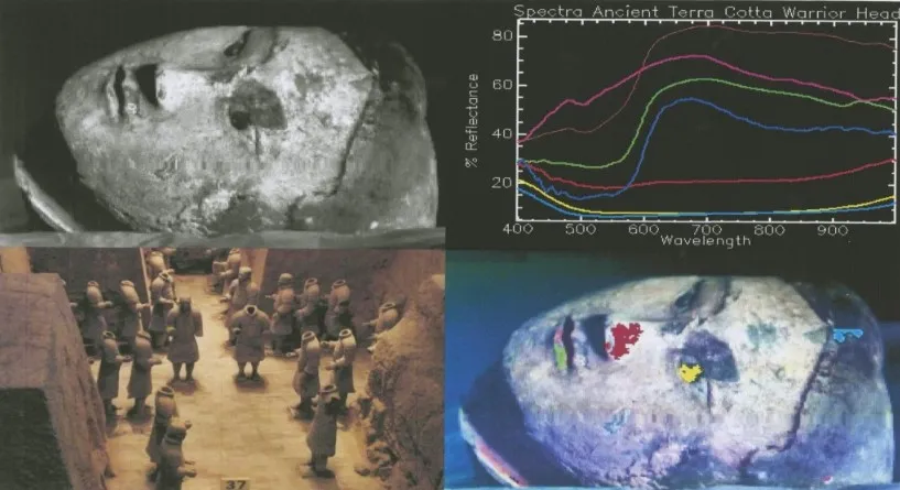Hyperspectral imaging technology enables the non-contact acquisition of image spectral information from the Terracotta Warriors. By analyzing the images and spectral information of the Terracotta Warriors, one can assess the extent of deterioration caused by diseases and determine the pigments used in their production. Based on the analysis results, simulated restoration can be performed.