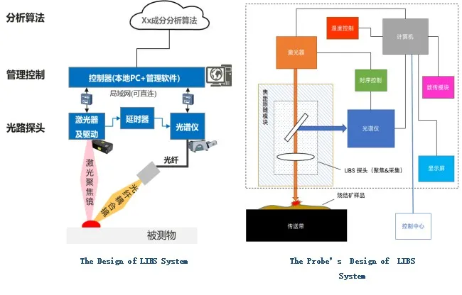 The LiSen Optics industrial online LIBS system is composed of three main parts: the optical probe (for online LIBS spectral collection), management control, and analysis algorithm. LiSen Optics is primarily responsible for the online LIBS spectral collection and management control. The system structure of the online LIBS spectral collection is outlined below.