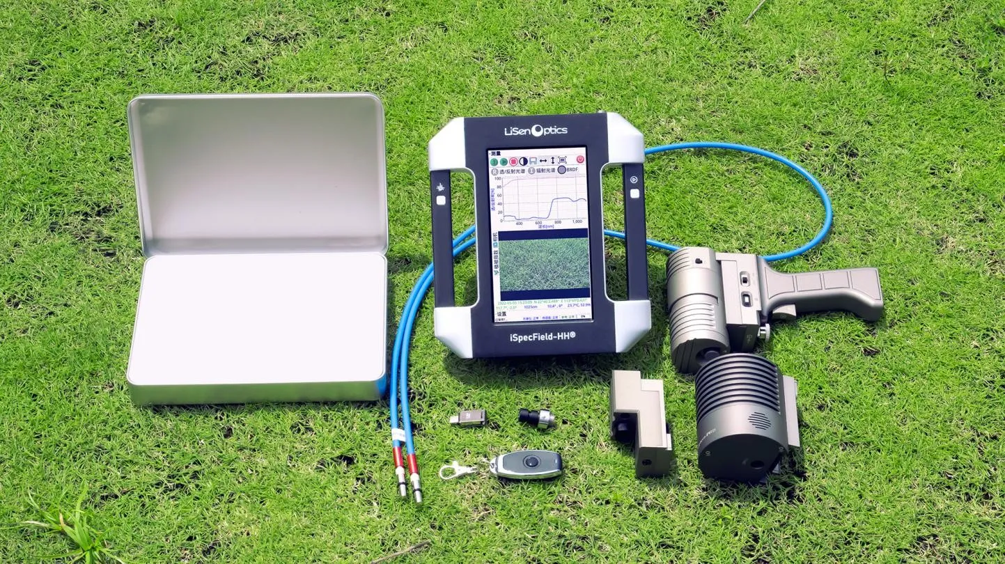 The iSpecField-HH handheld field spectrometer is the latest product from LiSen Optics designed specifically for remote sensing environmental monitoring in the field. It is a truly portable handheld spectral analyzer due to its flexible and convenient operation, fast spectral testing speed, and accurate spectral data. The iSpecField-HH features a 7-inch industrial-grade touch screen display and the unique optical design with a built-in camera, GPS, the laser indicator, a built-in optical shutter control, a remote trigger, and the software that can be set to automatic collection mode (specifying scan times and automatic data saving), making it more convenient for field operations and ideal for complex field environment monitoring and measurement.