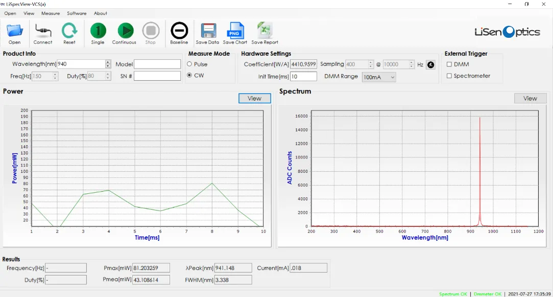 Laser Spectral Power Integrating Sphere Tester Software’s UI