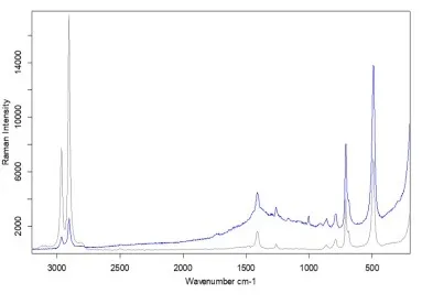 Raman Spectrum of Dimethyl Silicone Sample (Blue) Compared to Spectral Library