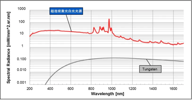 The supercontinuum laser white light source can emit exceptionally strong light from a 100 µm scale light point.