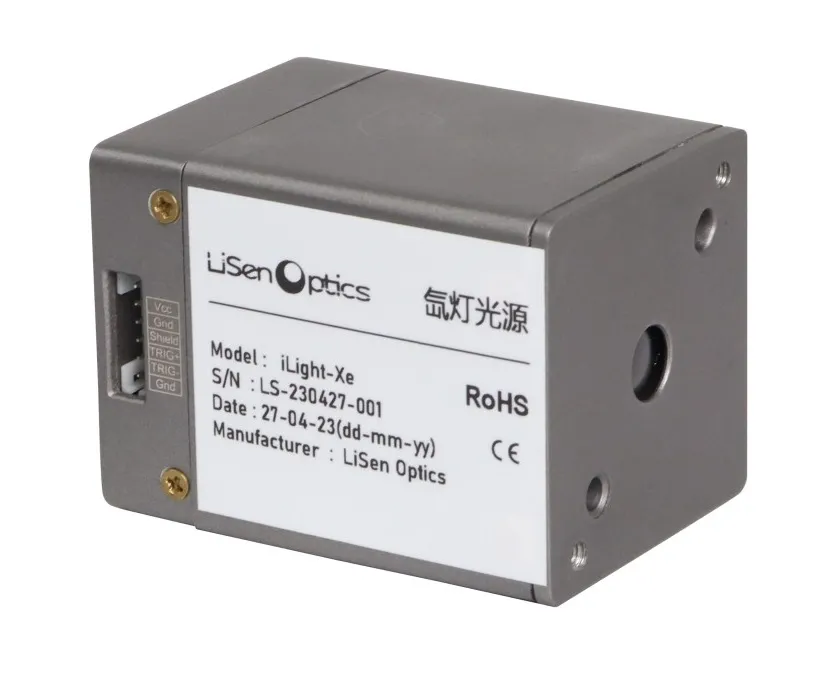 The iLight-XE xenon light source from LiSen Optics is a high flash rate, short-arc xenon lamp that covers a wavelength range from 185 to 2000 nm, making it an ideal choice for scientific research, industrial applications, and optical experiments. This light source offers two types of outputs: an SMA interface or free-space light output, with a maximum trigger frequency of 79 Hz. The output from this xenon lamp provides high instantaneous power, excellent stability, and a long bulb life, making it especially suitable for applications in water quality analysis, gas absorption studies, biochemistry, and fluorescence.